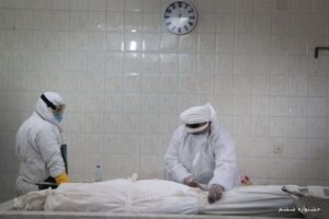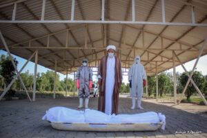 همچنین روحانیون آئینهای غسل و کفن جان باختگان بر اثر کرونا را انجام دادند.